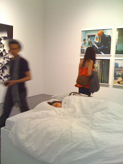 All of the photos that I’ve posted here are from the 2nd floor, and vary from “living sculpture” (Live model, bed, and sleeping pill) to a large digitized colorfield by Cory Archangel, seen below.