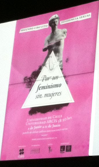 K8 Hardy, posed the question “How has the spread of gay and lesbian liberation impacted the feminist and punk subcultures in Chile?” Working in performance, film and video K8 Hardy ventured to South America, along with a companion to seek out the LGBT Community which she found is public and present throughout social space and appears to have become more acquiescent, post gay and women’s liberation, due to an empowerment of Chilean youth who have succeeded in radical change within the education system. Her presentation was the longest (having gone over the allotted time), and addressed issues of pop-culture and sub-culture including Chilean all girl punk bands such as Femicido Banda.