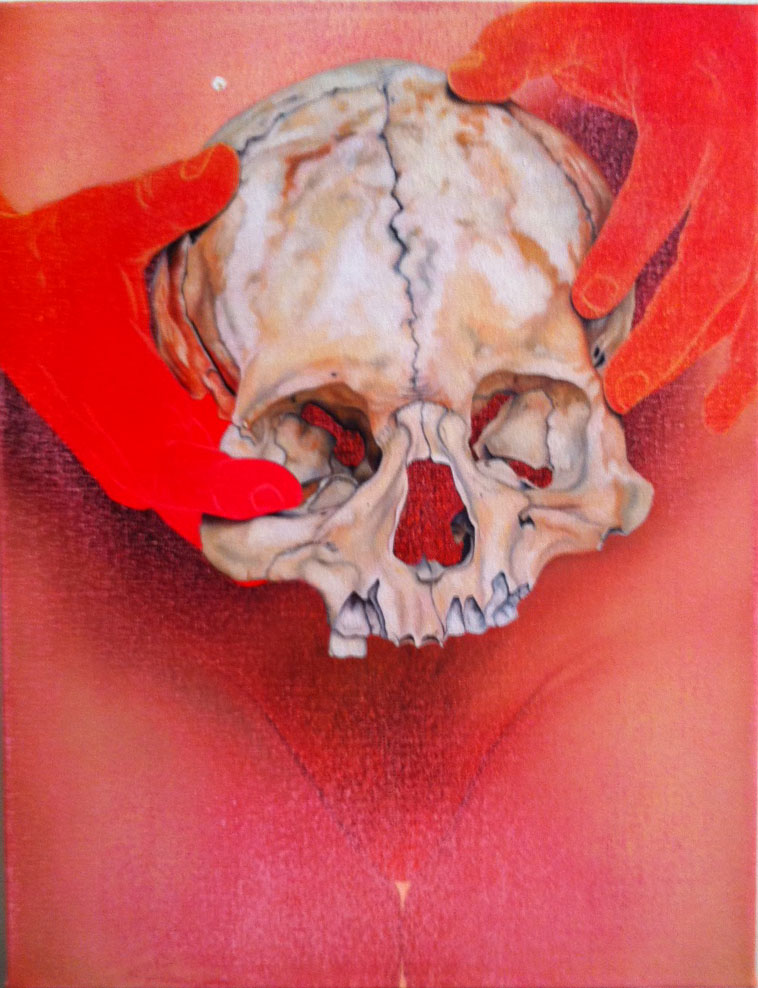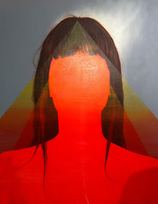 The figures in Jenny’s paintings are mostly women. They are both doe-eyed and scheming, enticing the viewer and yet with blank stares, also pushing him/her away. The works are all oil on canvas, save for the drawing above, the paint having been thinly applied and scraped away in particular segments. This works better in the painted figures where the scraping feels like remnants of skin that has been pealed off. However in others, the scraped area carries too much weight and takes away from the rest of the canvas, creating a break in fluidity. Overall the effect is visually appealing and eerie, offering a ghostliness. The images I am posting here, my personal favorites, are not necessarily the truest examples of her body of work, but in showing the viewer less, I believe she is telling more. It is in the process of removing specificity that the work creates a stronger contemporary dialogue.