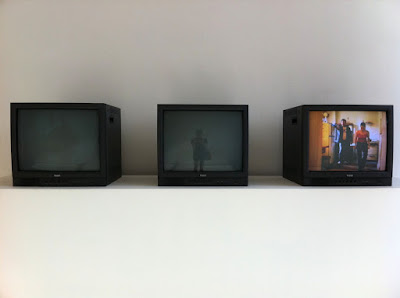 The piece above is on a small monitor, alone in a gallery and features the artist writhing and acting out/performing sexual positions in hotel rooms, alone. Her body, moves and girates and is assumingly unaware of the absense of her a partner. However “he” exists in the silence as well as in the negative space that surrounds the body. The work is very strong, conjuring elements of lonliness, loss, and yet also a particular humorous element in the discomfort of watching someone move in friction filled positions meant to be shared with another person, and yet shared with all who visit the exhibition.