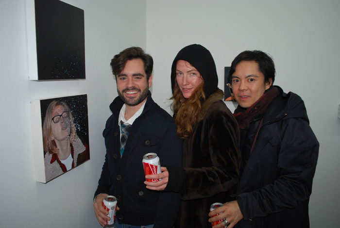 Some Girls, curated by Noah Becker recently opened at Launch F18 a small gallery space in Tribeca, NY. The gallery is located directly between White and Franklin street on Broadway and open by appointment only. Saturday evening, guests spilled into the hallway from the tiny rectangular venue which was filled almost to capacity. Guests had to weave between each other and the walls in order to grab a Budweiser, say hello and look at the art. The work presented consists of painting and collage. The theme, as one may guess from the exhibition name is: Some Girls. The title is as vague as it is specific and the content, of course demonstrating members of the female persuasion, is both contemporary as it is timeless.