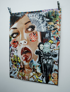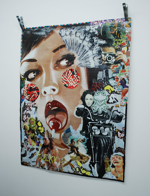 Artist Michael Anderson comes close to establishing the possibility for narrative in his collage work. He utilizes torn and cut, found imagery to construct an organized, chaotic, 2-dimensional landscape constructed with various references to popular culture. At times the recognizable images were distracting from the overall composition, but these elements are the composition and put forth a palatable and colorful layer that is both ironic in its criticism as it is sincere.
