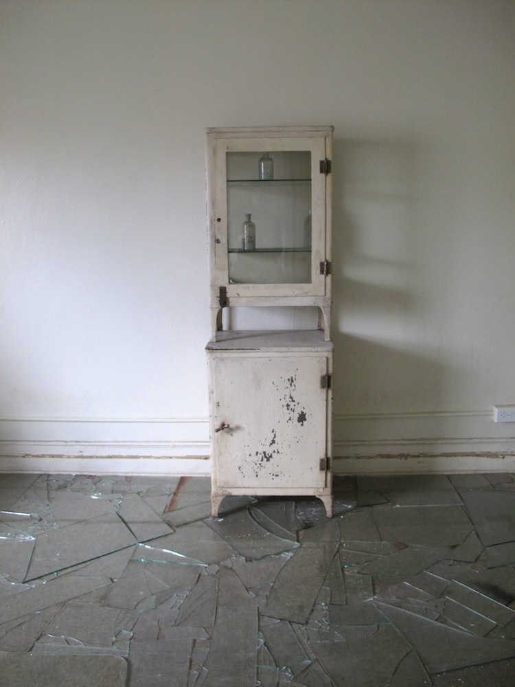 When recently in attendance at the home, light streamed through every window. But evidence exists around almost every corner juxtaposing life and death, abandonment and rebirth. It isn’t common for property to exist in New York City at this magnitude, nonetheless a majority of it to have been vacated for so long. Dust resides in the dated carpet and on almost every unused surface. Tapping into the subtle resonance of sickness and geriatric lifestyle is artist Gian Maria Tosatti . After having recently completed a residency and intense, site specific installation through LMCC on Governors Island, Tosatti delighted in the opportunity to install another site-specific project, this time at the Andrew Freedman Home. Utilizing glass found in various rooms, the artist delicately and precisely fit the glass, as pieces of a puzzle into the floor of one of the rooms. Also installed is an old file cabinet containing medical records of some of the previous inhabitants. As the viewer is invited to enter the room and proceed with caution, I found that I was caught off guard as glass cracked and shattered under the weight of my body. The varied audio which arises due to public participation is unexpected, however pleasant surprise adding to the awkwardness of the already surreal experience.