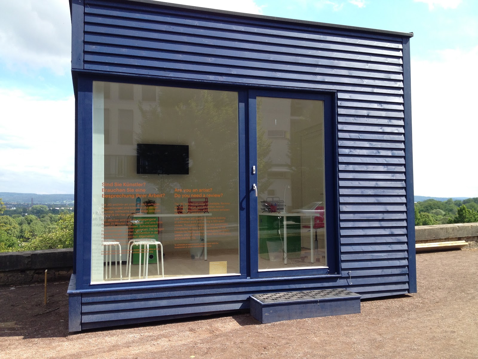 Also along the path bordering the park, is a work by Canadian born, Chicago based art critic Lori Waxman. Housed in a small, square blue structure, with a glass front, the piece is titled 60 wrd/min art critic. The piece promises what the title alludes to. Artists are invited to bring his or her original artwork and or images of their artwork review by Waxman. The critic will partake in her own performative gesture promising a 100 to 200 word review which will be made in a total of 25 minutes. The computer screen revealing her own creative/critical writing process will be shown in real-time, bring the process from behind closed doors into the public realm. During dOCUMENTA (13) Waxman will be available throughout the exhibition on Monday, Wednesday and Saturday from 1-6pm. The piece combines a sense of humor, reflecting the context in which it has been placed, while also tapping into the for power of the word and challenge of a response to immediacy in a time when the Internet spreads text and reviews within the art community and beyond like wild fire yet prove to still be an important marker in career development. What 60 wrd/min art critic does is offer an opportunity of access for those who may feel they are on the outside looking in, however, if the artist has arrived at dOCUMENTA (13) the wonder of the actual inaccessibility of a review and reaching a particular void in a community seems to fall short. Yet, maybe this is where the project crosses the line from function to art and performance.
