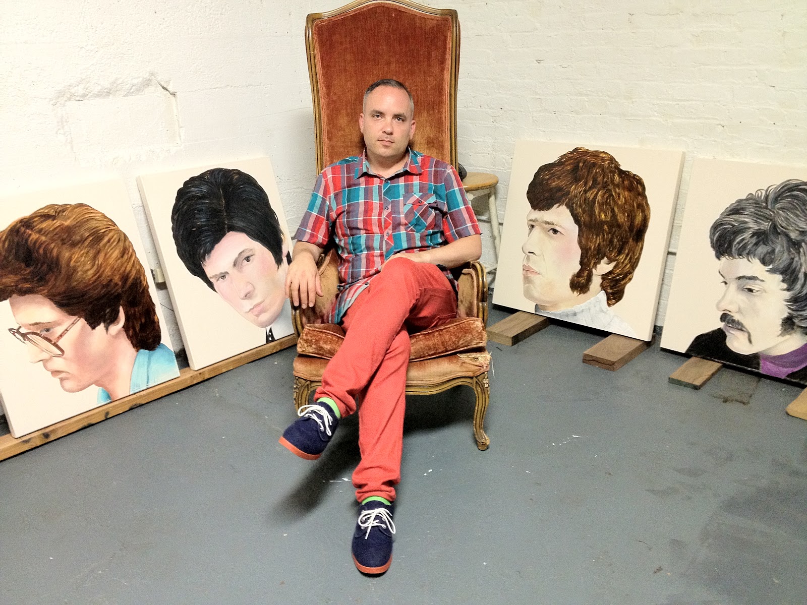 Noah Becker is a renaissance man, if you will. He is the founder and editor of the contemporary art magazine Whitehot, a jazz musician, frequent panel participant, independent curator, and yes, artist. Noah has been busy working on his new series of paintings, For Men Who Appreciate History, based on British hair models from the 60s and 70s.  While dividing his time between Canada and New York he has returned to New York with impeccable timing not only for the start of the September gallery season but also for GO Brooklyn Art, an open studio event. GO is a Brooklyn-centric event involving over 1,800 artists who have opened their studios the weekend of September 8th-9th. The event is a community based project organized by the Brooklyn Museum and visitors have the opportunity to vote for his or her favorite participating artist. At the time of this article, over 23,000 people have “checked in” to vote for his or her choice on the GO website. The top ten artists will receive studio visits by Brooklyn Museum curators and have the chance to participate in an exhibition at the Museum, December 1st, 2012.