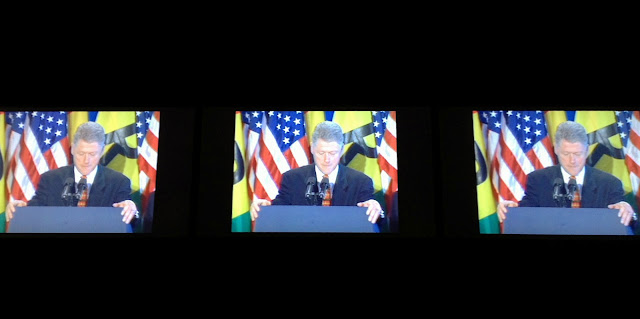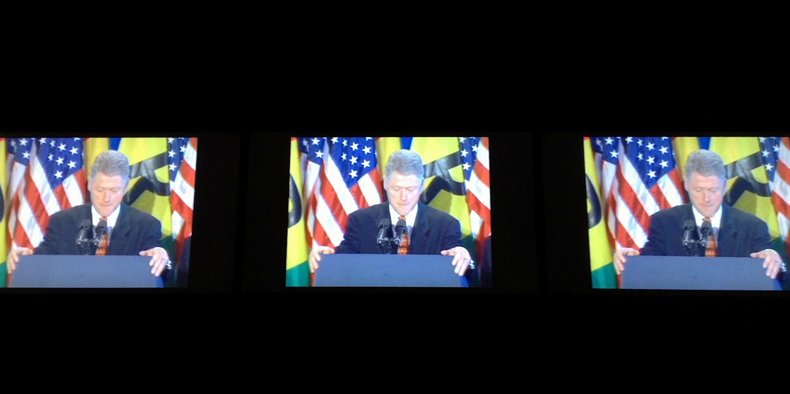 During Berlin Art Week, Alfredo Jaar had the luxury of showing work in three different venues for his exhibition, The way it is. An Aesthetics of Resistance. A retrospective divided into three parts, was shown at NGBK, Berlinische Galerie and Alte Nationalgalerie. The exhibition partially referenced two of the artists past projects that also took place in Berlin titled “Eine Ästhetik zum Widerstand” (“The Aesthetics of Resistance”) and “The Way It Was” both which were shown in the early 1990s. At the Berlinische Galerie, Jaar’s work focused on the atrocious genocide that occurred in Rwanda but is work that was made when the artist was based in Berlin (he is now based in New York). The exhibition at the Berlinische Galerie ranged from video portraits to photographs inscribed with text, some in German, some in English. His goal for this part of the Retrospective was to challenge the viewer by also involving them in a physical or psychological situation, hoping to bring each person closer to an experience that they are lucky they didn’t have (in this case Rwandan genocide). A particularly strong piece in a three channel video featuring President Clinton on a 1998 visit to Rwanda, acknowledging the severity of the genocide in a work titled “We Wish to Inform You That We Didn’t Know (2010)” and the failure of a global reaction. As the former President declares “It may seem strange to you here, but all over the world there were people like me sitting in offices, day after day after day, who did not fully appreciate the depth and the speed with which you were being engulfed by this unimaginable terror.” With each proclamation ending in “..people like me..” Jaar freezes the screen until all three are still. The work is both eerie and compelling. In the context of the exhibition, the viewer was forced to invest some of his or her time in order to experience the work in a way that was not necessarily comfortable.