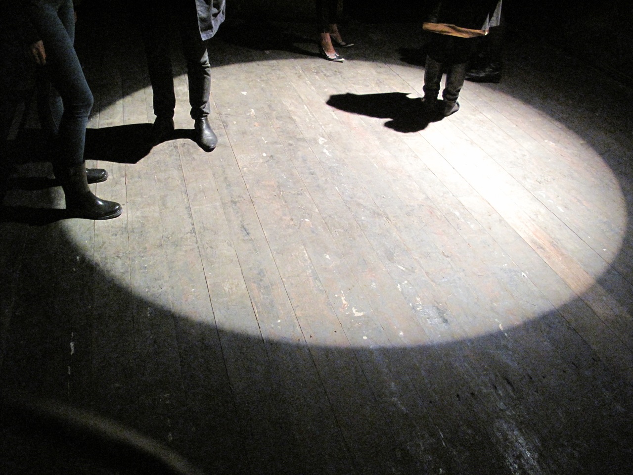 Next up on the list is Mike Nelson who as an installation at a location in Mitte associated with neugerriemschneider Galerie. In the main space is work by Simon Starling, including two videos and free-standing sculpture. However, for the more adventurous, Mike Nelson has intervened upon an abandoned space a few streets away from the main gallery. As with most of Nelson’s work, it is up to the viewer to discover the naturalistic details imposed upon an otherwise quiet locale. The first section allowed viewers the opportunity to enter a space that appeared “empty” and then proceed down a rickety, wooden staircase. sans signing a release form (impossible in the US). The second location, also enter at your own risk, presented a larger staircase leading up, rather than down. After climbing a few floors and walking through a dusty, crooked door, it is evident that we have landed on the stage of what appears to be a long ago forgotten theater, dark in it’s years of disuse. How odd for a theater, including a decorative wooden balcony and stage, to be present in not only this particular abandoned building, but also on the 2nd floor. Immediately one is reminded of the diverse, complicated history of Berlin. Was the theater used during the DDR (Deutsche Demokratische Republik 1949-1990)? Was it a glamorous hall occupied by the Nazi’s in WWII or could it have been a shelter, a place of respite for families of Jews who were in hiding throughout the late 1940s. In fact, Mike Nelson constructed the stage himself, lending it to the mythology and mystery of time passage. One particular, abnormal detail we are given is a spotlight, beaming onto the stage. Nelson has chosen to include us, each viewer to enter the room in his own theatrical performance, void of construct, but ripe with a magnitude of imaginative possibility.