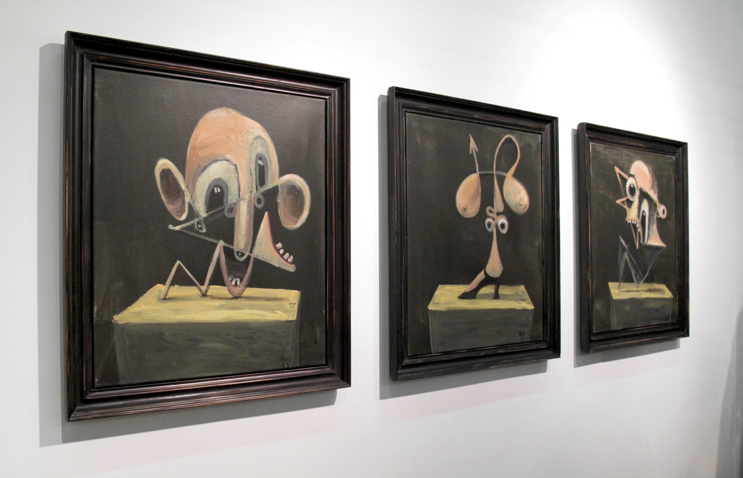 George Condo, 3 paintings, oil on canvas, framed