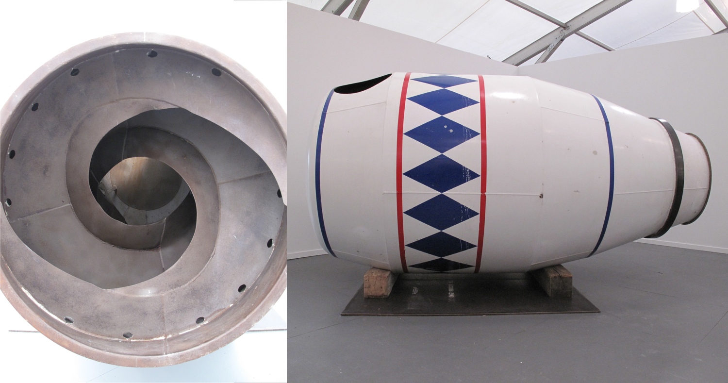 Alexandre da Cunha, Mix (Americana), 2013, Found cement mixer and wooden blocks (Right photograph)