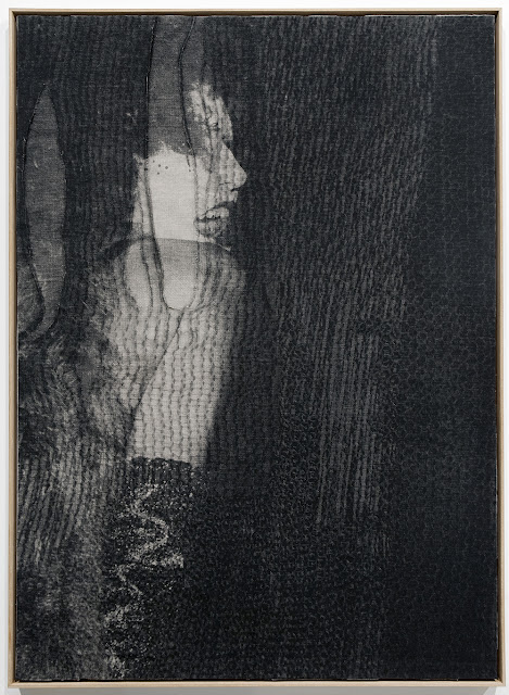 screen-printed jute and linen collage, 154 × 114cm